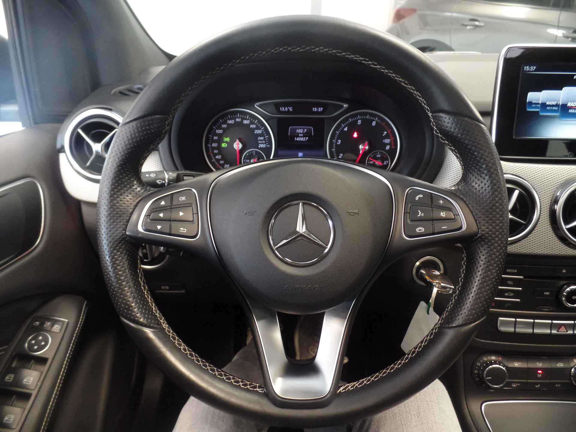 Een mooie, praktische auto voor het hele gezin, deze Mercedes-Benz B-klasse uit 2015 heeft 140753 kilometer gelopen. De krachtige benzinemotor van deze auto is gekoppeld aan een handgeschakelde zesversnellingsbak. Fijn zo'n elektrisch bediend glazen panoramadak. Xenonverlichting zorgt voor een krachtige en heldere lichtbundel. U wordt in deze auto ook getrakteerd op 16 inch lichtmetalen velgen, LED koplampen, warmtewerend glas, in delen neerklapbare achterbank en snelheidsafhankelijke stuurbekrachtiging.